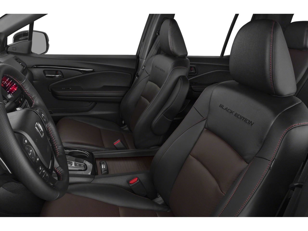 - Leather and piano black steering wheel