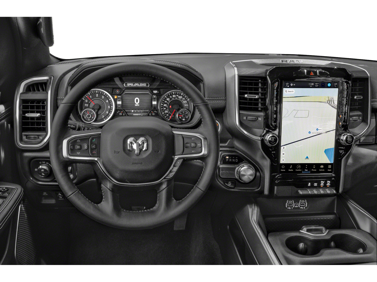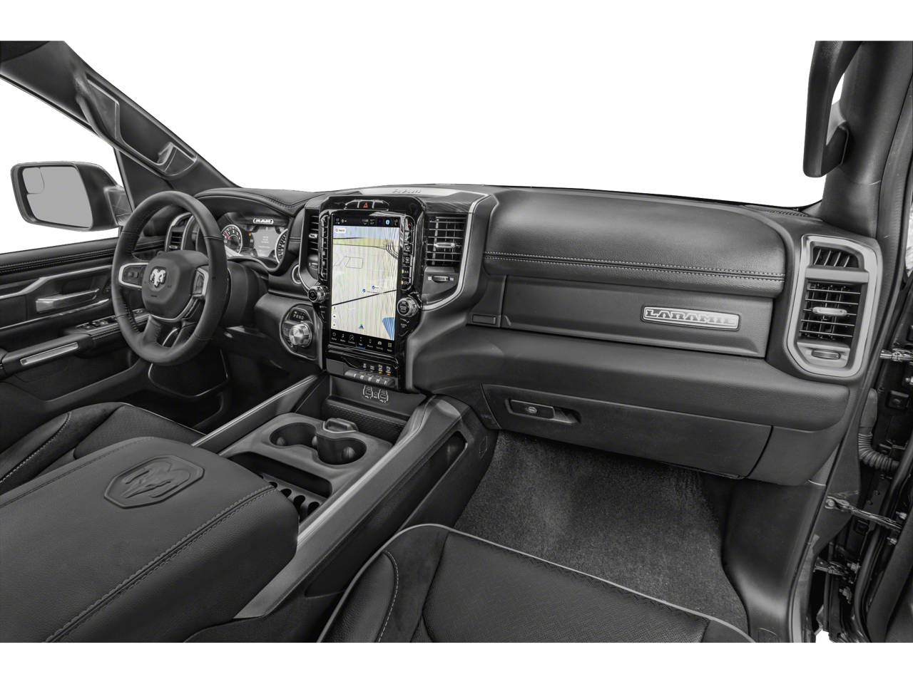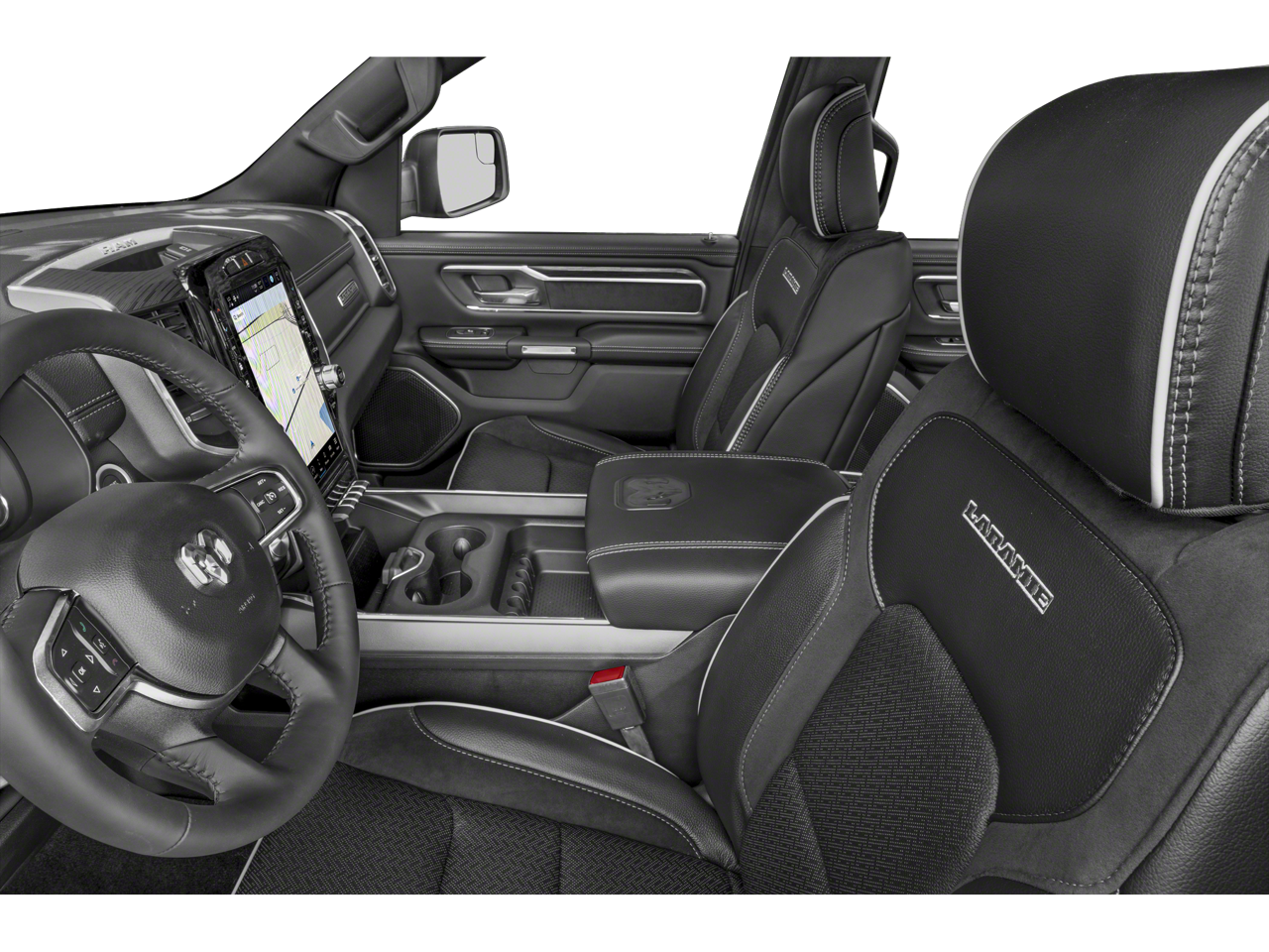 ASK ABOUT OUR NO PAYMENTS FOR 90 DAYS, Bluetooth®, FACTORY NAVIGATION/GPS, REAR BACKUP CAMERA, SEE OUR CREDIT REBUILDING TEAM, AS LITTLE AS ZERO DOWN PAYMENTS AVAILABLE, #1 Seat Foam Cushion, 10 Speakers, 12 Touchscreen Display, 2nd Row In Floor Storage Bins, 3 Rear Seat Head Restraints, 3.21 Rear Axle Ratio, 33 Gallon Fuel Tank, 4 Way Front Headrests, 4-Wheel Disc Brakes, 48V Belt Starter Generator, 4G LTE Wi-Fi Hot Spot, ABS brakes, Adjustable pedals, Air Conditioning, AM/FM radio: SiriusXM with 360L, Anti-Spin Differential Rear Axle, Apple CarPlay, Apple CarPlay/Android Auto, Audio memory, Auto High Beam Headlamp Control, Auto-dimming door mirrors, Auto-Dimming Exterior Driver Mirror, Auto-dimming Rear-View mirror, Automatic temperature control, Black Interior Accents, Blind Spot & Cross Path Detection, Body Color Exterior Mirrors, Body Color Front Bumper, Body Color Premium Power Mirrors, Body Color Rear Bumper w/Step Pads, Brake assist, Bumpers: chrome, Chrome Exterior Mirrors, Class IV Receiver Hitch, Compass, Connected Travel & Traffic Services, Connectivity - US/Canada, Convex Wide-Angle Exterior Mirror Insert, Delay-off headlights, Disassociated Touchscreen Display, Driver door bin, Driver Seat Memory, Driver vanity mirror, Dual front impact airbags, Dual front side impact airbags, Electronic Stability Control, Exterior Mirrors Courtesy Lamps, Exterior Mirrors w/Heating Element, Exterior Mirrors w/Memory, Exterior Mirrors w/Supplemental Signals, Exterior Parking Camera Rear, Foam Bottle Insert (Door Trim Panel), For Details, Visit DriveUconnect.com, For More Info, Call 800-643-2112, Front anti-roll bar, Front Center Armrest w/Storage, Front Door Accent Lighting, Front dual zone A/C, Front fog lights, Front LED Fog Lamps, Front License Plate Bracket, Front reading lights, Front Seat Back Map Pockets, Front wheel independent suspension, Fully automatic headlights, Garage door transmitter, Global Telematics Box Module (TBM), Google Android Auto, GPS Antenna Input, GPS Navigation, Grille Surround 3 Body Color Tex 2 Black, HD Radio, Heated door mirrors, Heated Front Seats, Heated front seats, Heated Steering Wheel, Heated steering wheel, Illuminated entry, Integrated Center Stack Radio, Integrated Voice Command w/Bluetooth®, Laramie Level 1 Equipment Group, Leather steering wheel, Leather Trim 40/20/40 Bench Seat, LED Reflector Headlamps, Low tire pressure warning, Manufacturer's Statement of Origin, Memory seat, MOPAR Front & Rear Rubber Floor Mats, Navigation System, Occupant sensing airbag, Outside temperature display, Overhead airbag, Overhead console, Panic alarm, ParkSense Front/Rear Park Assist w/Stop, ParkSense Front/Rear Park Assist w/Stop (DISC), Passenger door bin, Passenger vanity mirror, Pedal memory, Power 2-Way Driver Lumbar Adjust, Power 2-Way Passenger Lumbar Adjust, Power 8-Way Driver & Passenger Seats, Power door mirrors, Power driver seat, Power passenger seat, Power steering, Power windows, Power-Folding Mirrors, Quick Order Package 27H Laramie, Radio data system, Radio: Uconnect 5 Nav w/12.0 Display, Radio: Uconnect 5 Nav w/8.4 Display, Rain Sensitive Windshield Wipers, RAM Grille Badge - Chrome, Rear 60/40 Folding Seat, Rear anti-roll bar, Rear Door Accent Lighting, Rear Power Sliding Window, Rear seat center armrest, Rear step bumper, Rear Underseat Compartment Storage, Rear Window Defroster, Remote keyless entry, Remote Tailgate Release, Security system, SiriusXM Radio Service, SiriusXM w/360L, Speed control, Split folding rear seat, Sport Appearance Package, Sport Decal, Sport Performance Hood, Steering wheel mounted audio controls, Tachometer, Telescoping steering wheel, Tilt steering wheel, Traction control, Trailer Brake Control, Trailer Light Check, Trailer Reverse Steering Control, Trailer Tire Pressure Monitoring System, Trailer Tow Group, Trip computer, Turn signal indicator mirrors, USB Host Flip, Variably intermittent wipers, Ventilated Front Seats, Ventilated front seats, Voltmeter, Whe