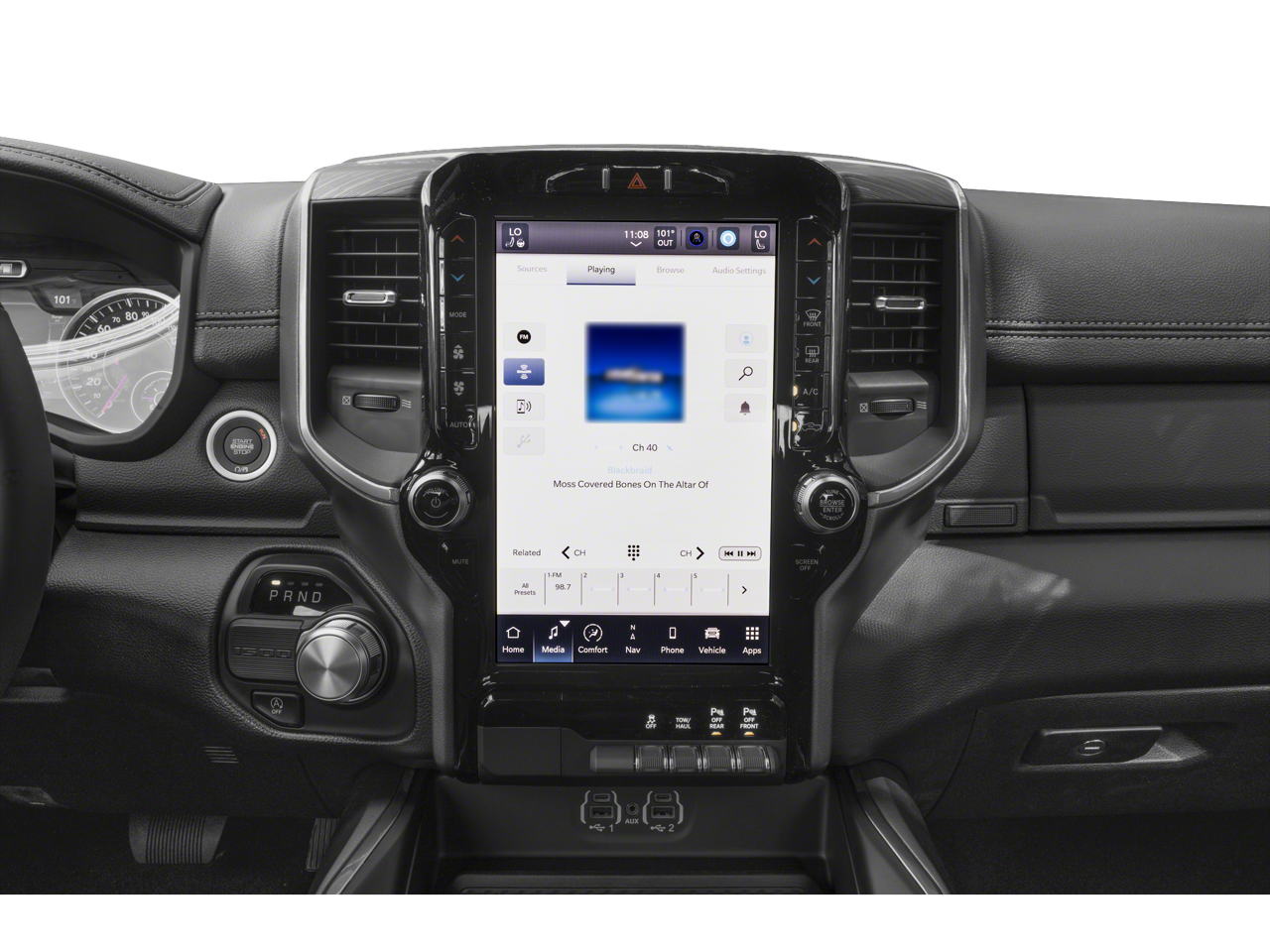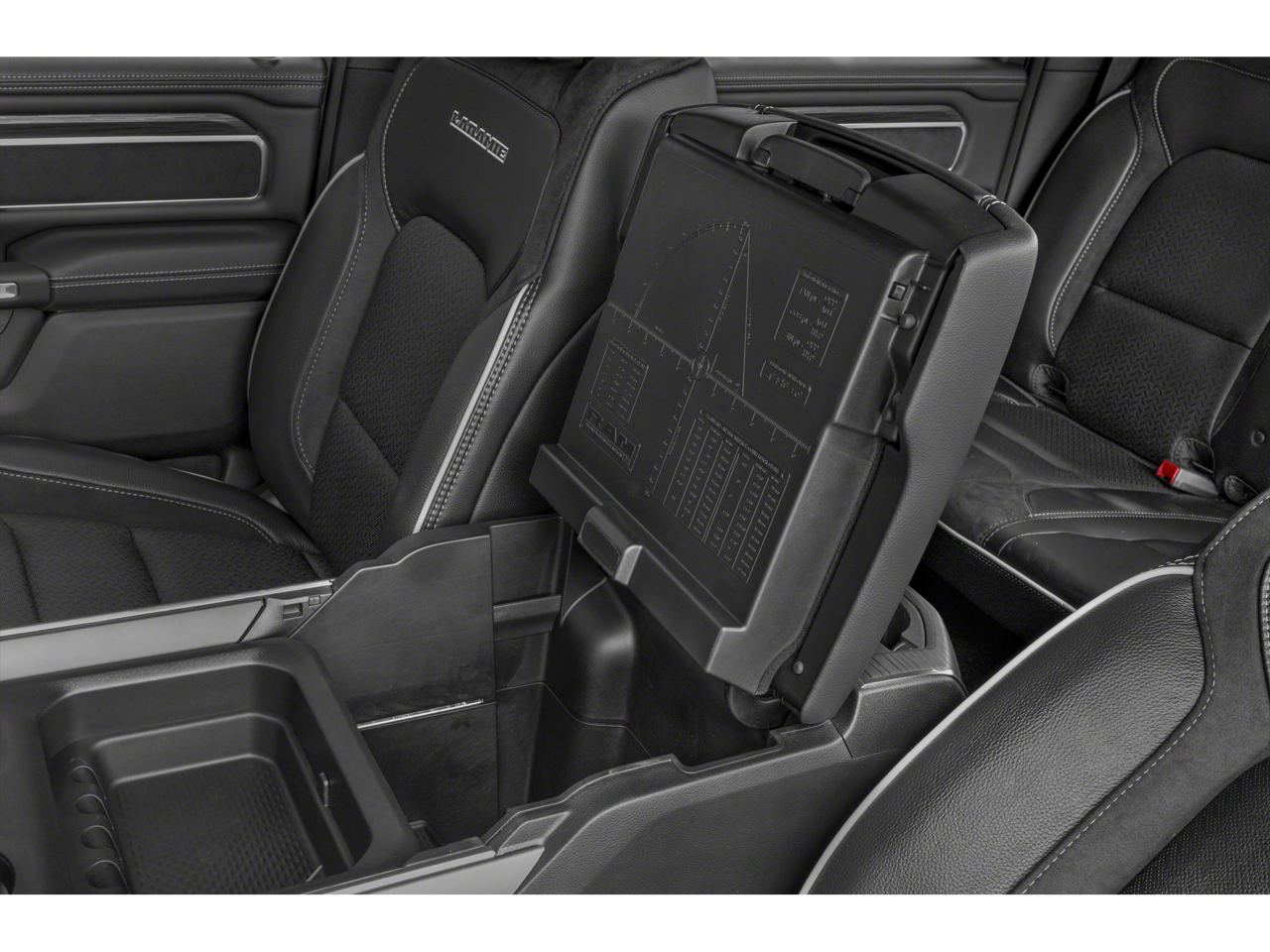Laramie Level 1 Equipment Group: Google Android Auto; SiriusXM Radio Service; USB Host Flip; Rear Window Defroster; Blind Spot and Cross Path Detection; Rain Sensitive Windshield Wipers; Integrated Center Stack Radio; ParkSense Front/rear Park Assist with Stop; For Details. Visit DriveUconnect.com; For More Info. Call 800-643-2112; Rear Power Sliding Window; Integrated Voice Command with Bluetooth®; Connectivity - US/Canada; 12" Touchscreen Display; GPS Navigation; 4G LTE Wi-Fi Hot Spot; GPS Antenna Input; SiriusXM with 360L; Global Telematics Box Module; Connected Travel and Traffic Services; Front LED Fog Lamps; LED Reflector Headlamps; Foam Bottle Insert (door Trim Panel); Apple CarPlay; Disassociated Touchscreen Display; HD Radio; Uconnect 5 Navigation with 12.0" Display Radio; Remote Tailgate Release; Auto High Beam Headlamp Control; Front Door Accent Lighting; 2nd Row in Floor Storage Bins; Rear Door Accent Lighting. Quick Order Package 27H Laramie. Sport Appearance Package. Trailer Tow Group: Trailer Light Check; Trailer Brake Control; Trailer Reverse Steering Control; Trailer Tire Pressure Monitoring System. 20" X 9" Premium Paint/polished Wheels. Leather Trimmed Bucket Seats. Anti-Spin Differential Rear Axle. ParkSense Front/rear Park Assist with Stop. 33 Gallon Fuel Tank. Class IV Receiver Hitch. Trailer Brake Control. MOPAR Front and Rear Rubber Floor Mats. Rear Underseat Compartment Storage. **Equipment listed is based on original vehicle build and subject to change. Please confirm the accuracy of the included equipment by calling the dealer prior to purchase.**