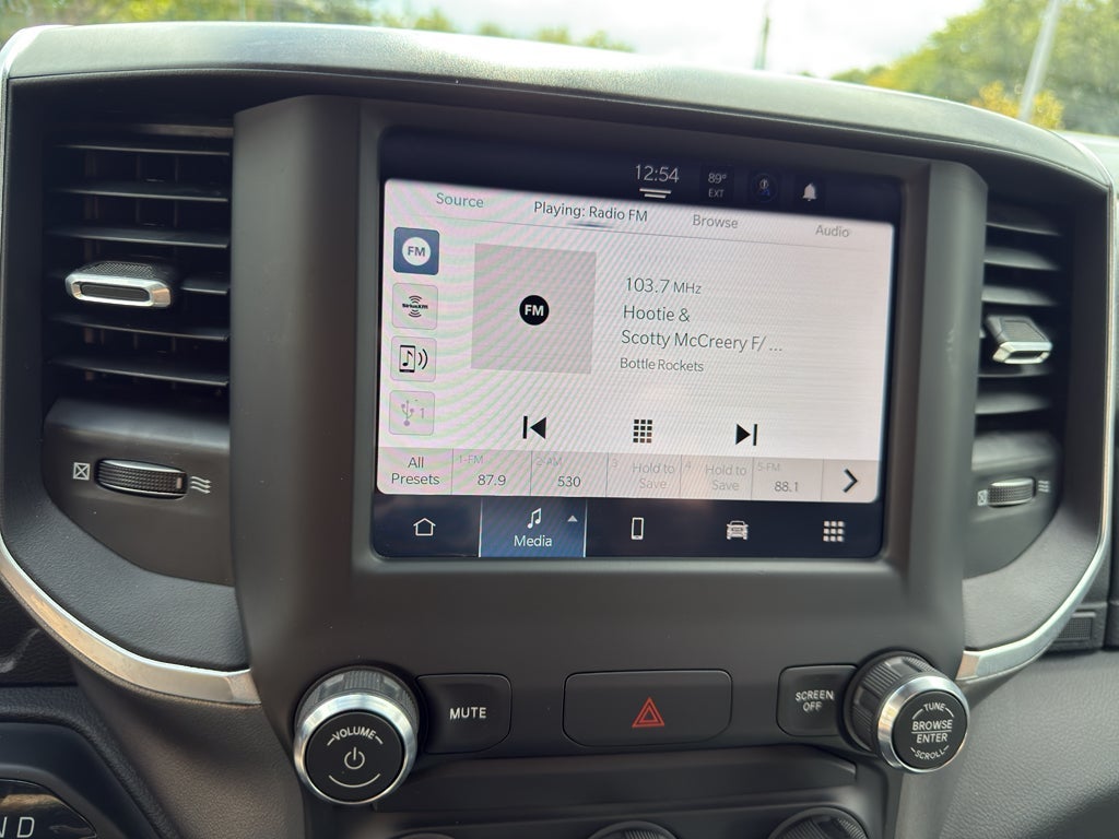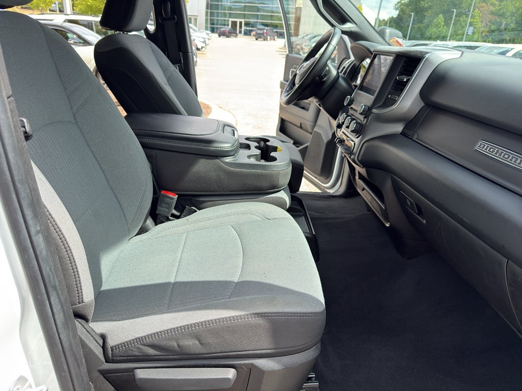 Quick Order Package 2GZ Big Horn. Level 1 Equipment Group: Google Android Auto; SiriusXM Radio Service; Bluetooth® Handsfree Phone and Audio; Integrated Center Stack Radio; For Details. Visit DriveUconnect.com; For More Info. Call 800-643-2112; Leather Wrapped Steering Wheel; Rear Dome with On/off Switch Lamp; Front Fog Lamps; Integrated Voice Command with Bluetooth®; Connectivity - US/Canada; Premium Cloth 40/20/40 Bench Seat; Glove Box Lamp; Auto Power-Folding Mirrors; Footwell Courtesy Lamp; 4G LTE Wi-Fi Hot Spot; GPS Antenna Input; Exterior Mirrors with Heating Element; Global Telematics Box Module; Mirror Running Lights; Uconnect 5 W Radio with 8.4" Display; 8.4" Touchscreen Display; Foam Bottle Insert (door Trim Panel); Black Exterior Mirrors; 18" X 8.0" Polished Aluminum Wheels; Apple CarPlay; Big Horn Instrument Panel Badge; Power Adjustable Convex Aux Mirrors; Forward and Reverse Utility Lights; Locking Lower Glove Box; Selectable Tire Fill Alert; SiriusXM Satellite Radio; Power Heated Fold Telescope Mirrors; Exterior Mirrors with Supplemental Signals; Steering Wheel Mounted Audio Controls; Exterior Mirrors Courtesy Lamps; Dual Glove Boxes; Center Hub; Power Adjust Mirrors; 2nd Row in Floor Storage Bins; Power Telescoping Mirrors. Premium Cloth 40/20/40 Bench Seat. Chrome Flat Cab-Length Side Steps. Front Fog Lamps. Tow Hooks. **Equipment listed is based on original vehicle build and subject to change. Please confirm the accuracy of the included equipment by calling the dealer prior to purchase.**